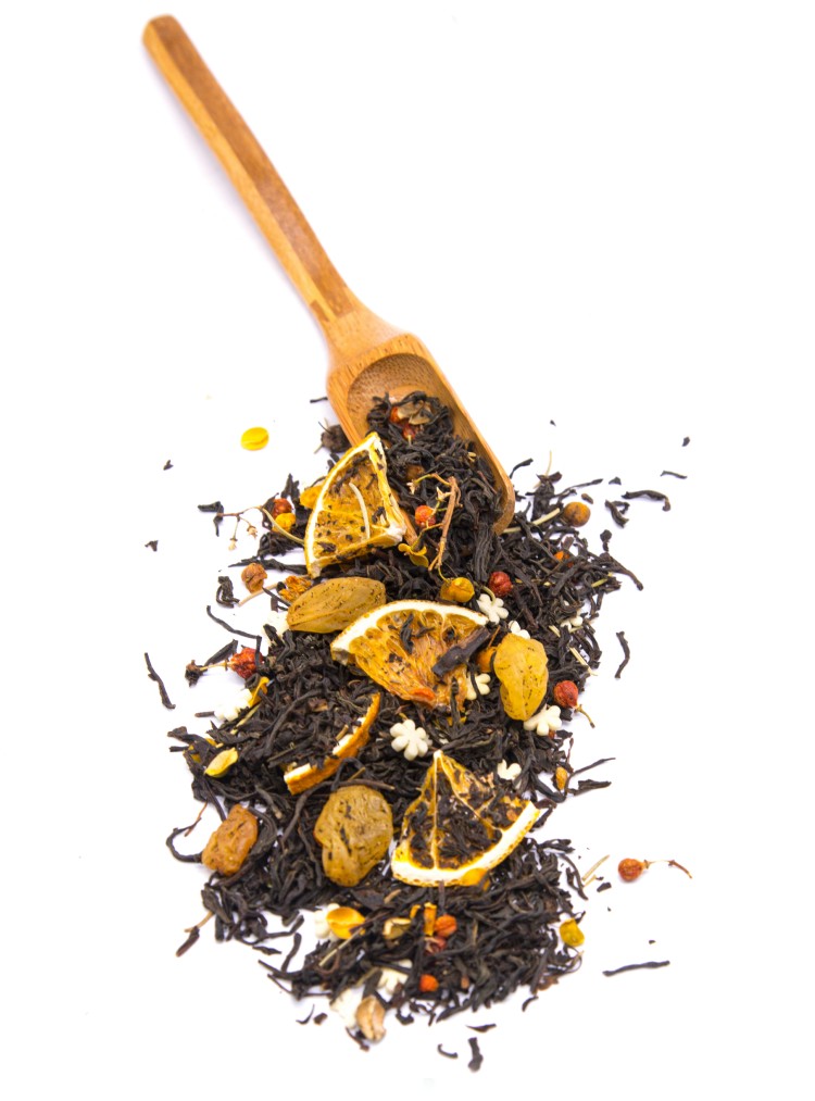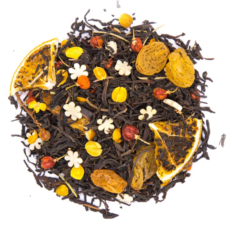 Это черный чай, пропитанный ароматами изюма, цветов акации, свежего апельсина, нежного розмарина и ароматом выпечки. В каждой чашке вы испытаете магию праздника, наслаждаясь сладостью и теплом, которые сочетаются с пикантностью и освежающей цитрусовой ноткой. Этот ароматный и волшебный чай приглашает вас окунуться в атмосферу уюта и радости, создавая настоящий праздник для вашего вкуса и чувств.