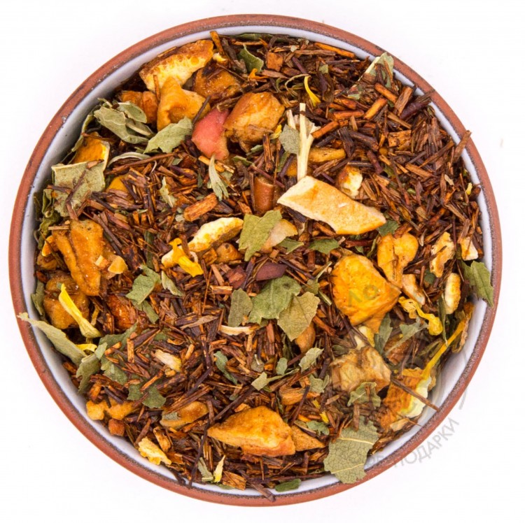 Ройбос, яблоко кусочки, апельсин цедра, календула лепестки, пищевой ароматизатор