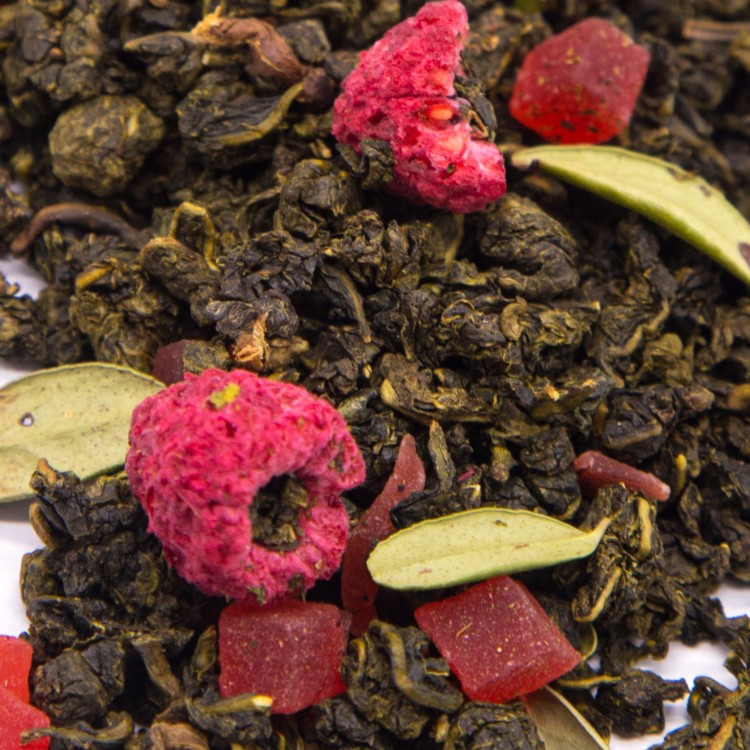 Чай улун китайский, цукаты ананаса, ягоды малины, листья брусники, аромат малинового сорбета